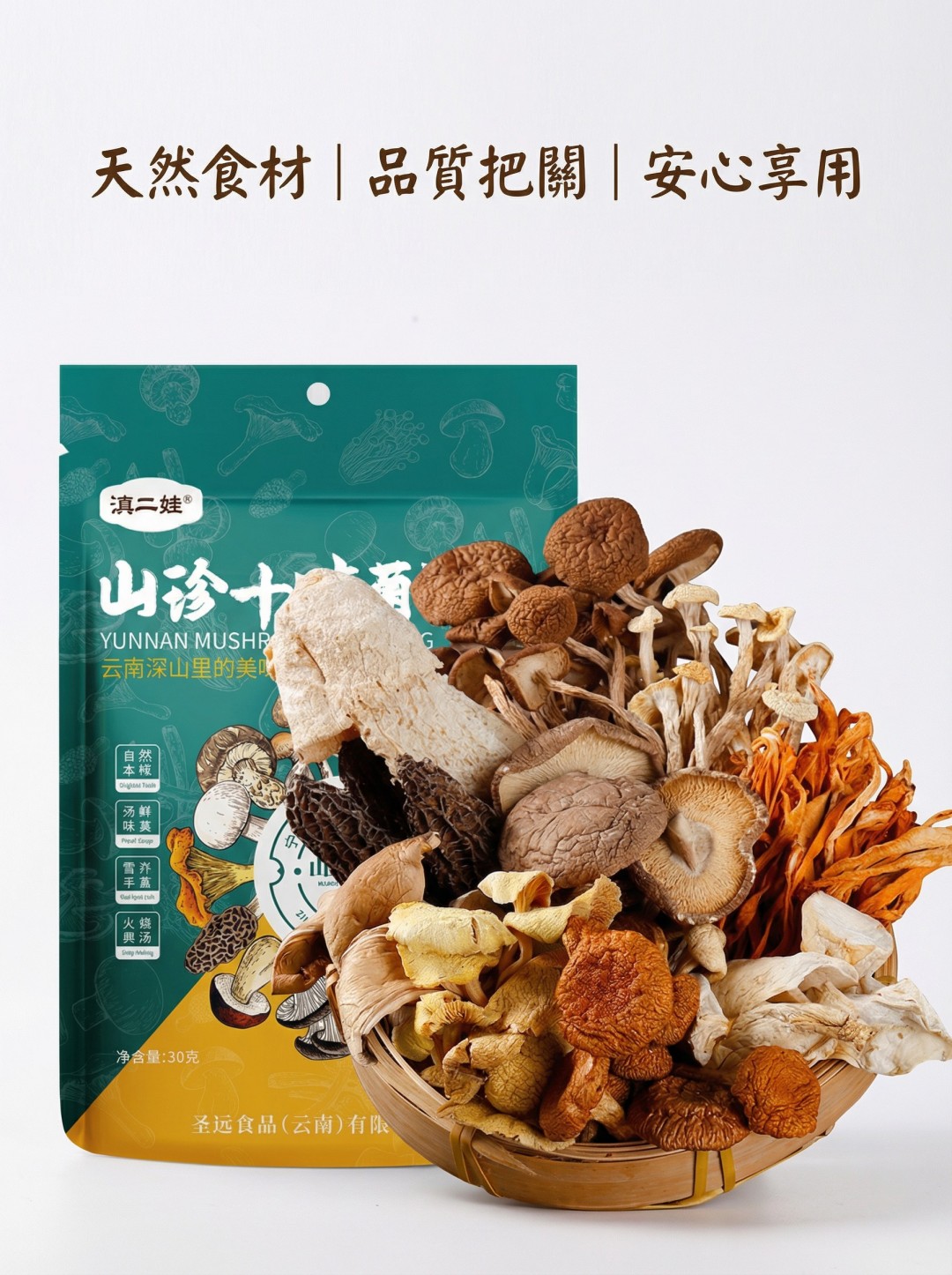 羊肚菌 | 蟲草花 | 竹笙 | 姬松茸牛肝菌 | 鹿茸菇 | 茶樹菇