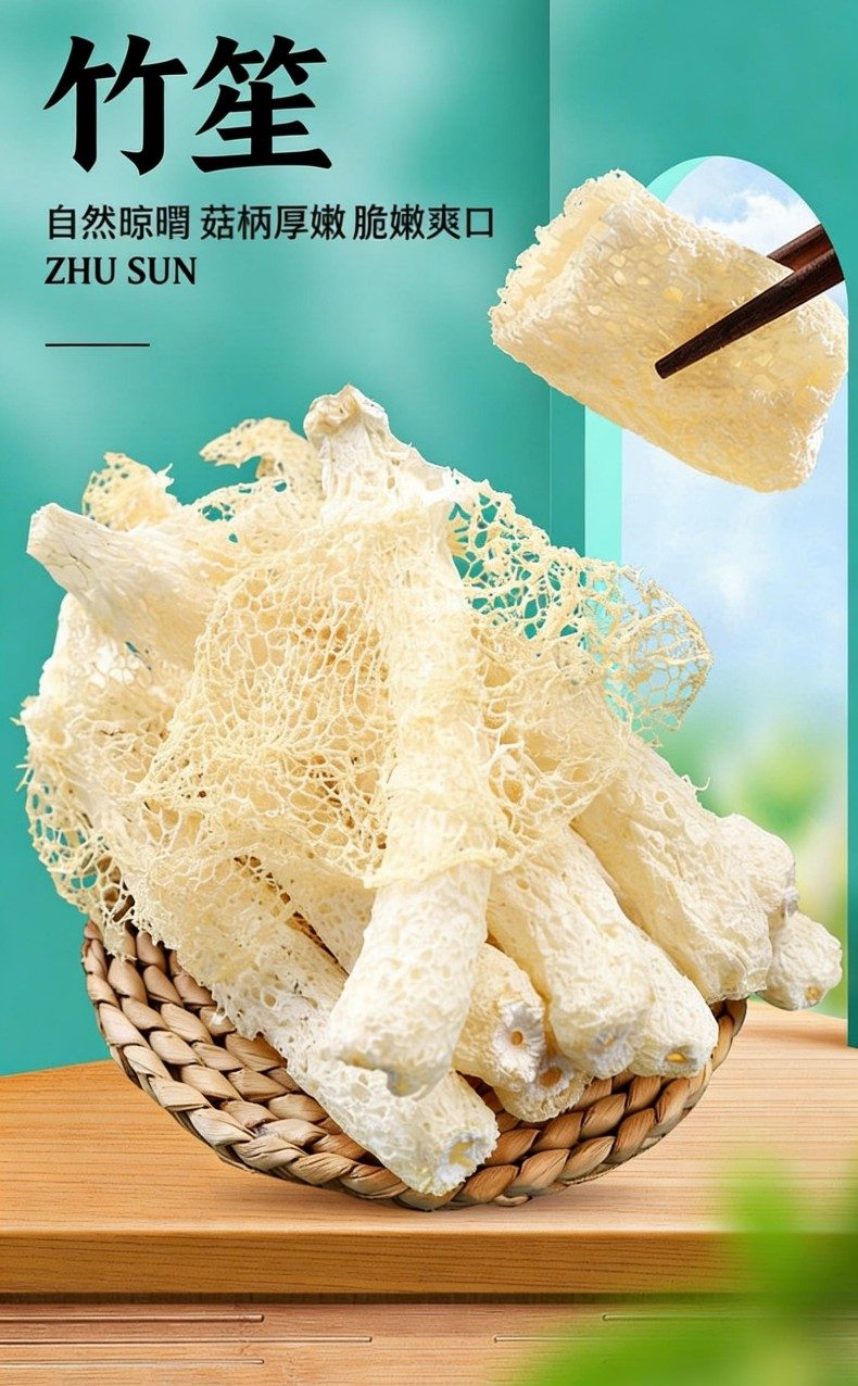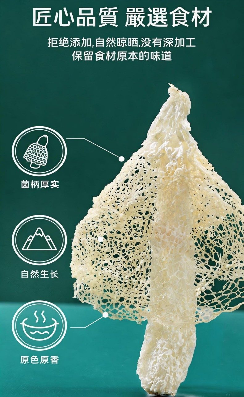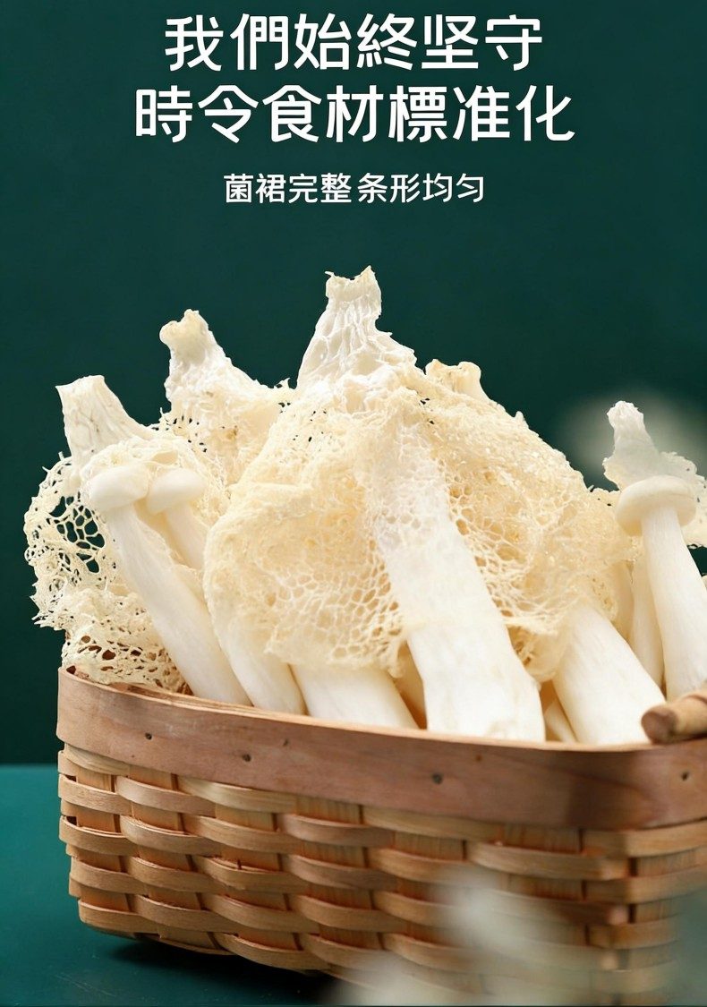晶瑩飽滿的優質竹笙,泡發後脆嫩 Q 彈,菌香濃郁。