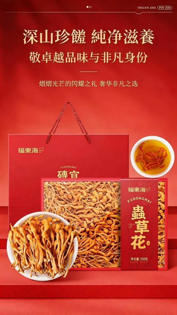 精美禮盒套裝,含蛹蟲草花及相關產品