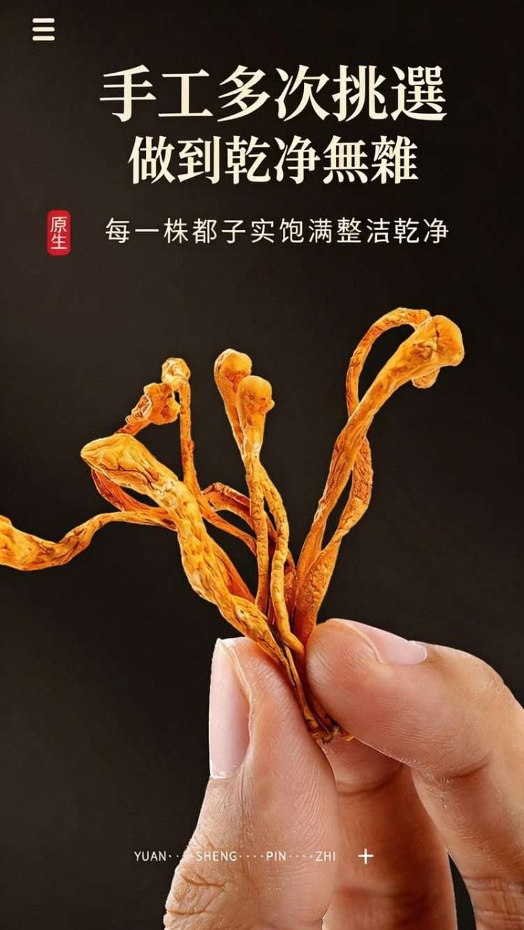人工多次挑選,去除雜質和不完整的菌體,確保每一根蛹蟲草花都完整飽滿